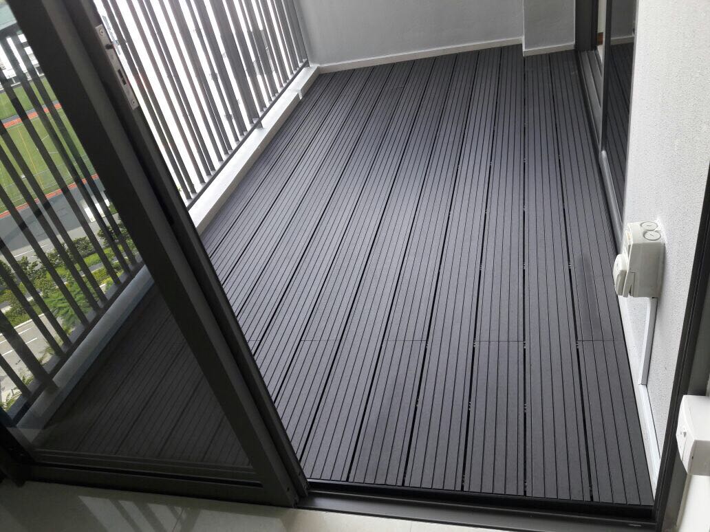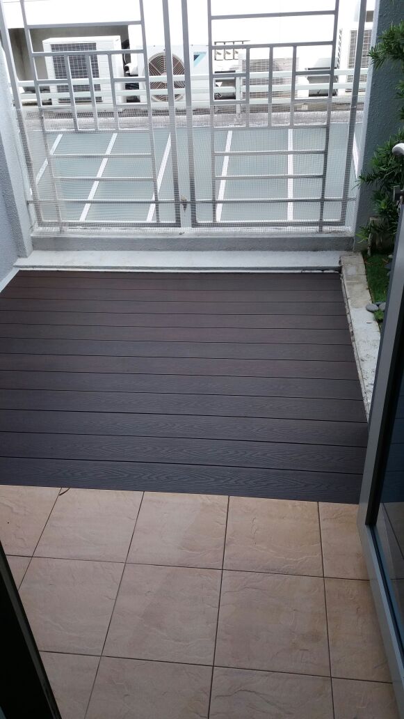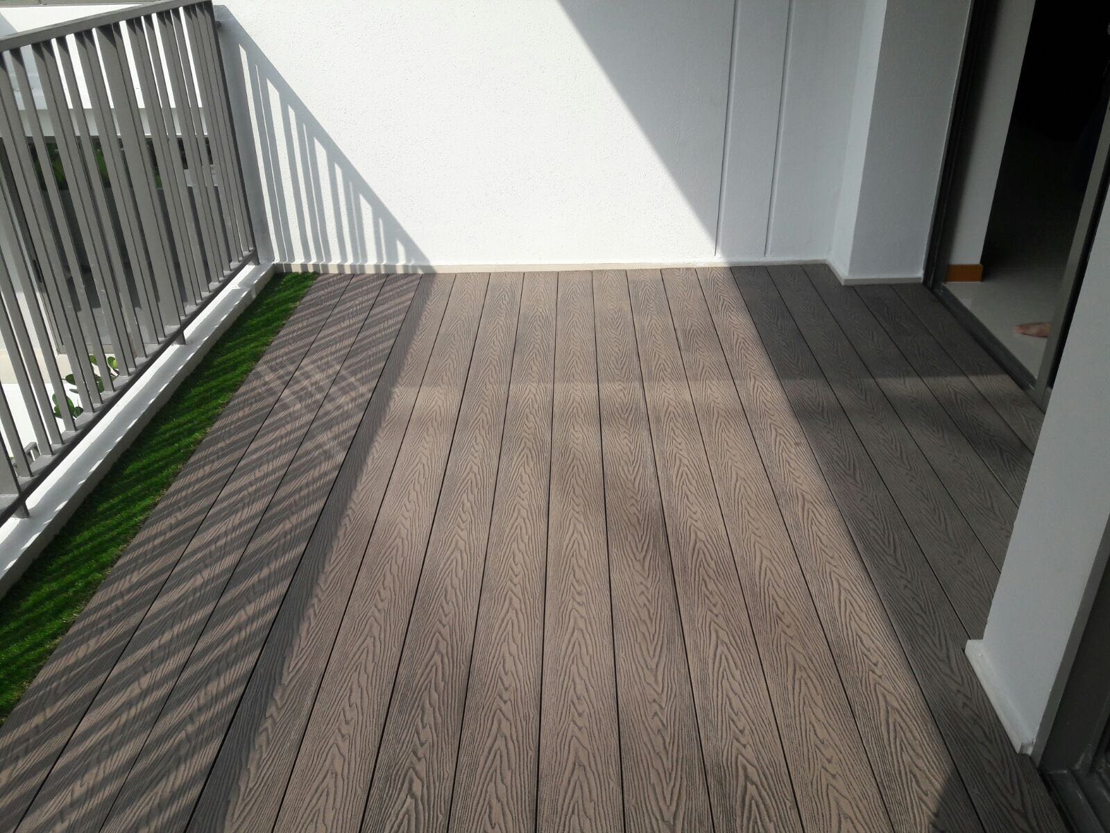 Made up of PP (Polypropylene) and Wood Fibre, it is tougher than other PE (Polyethylene) compositions. Other benefit includes its three-dimensional feel, stain-proof and mould-resistant. Visit our showroom for a wide array of options.