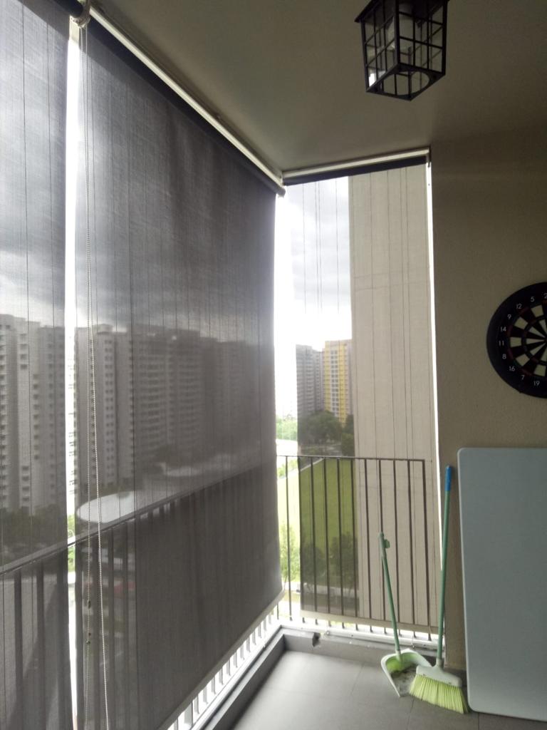 Outdoor blinds are used for balcony or HDB service yard applications (meaning for the outdoors). Decorland’s Outdoor blinds on the other hand are manually operated and is the most traditional and popular form of outdoor balcony/ yard/ open-area coverings due to its durability and heavy-duty nature. A set of strong stainless-steel wind guard are installed to allow outdoor blinds to glide in place to withstand the strongest of wind. Manufactured in house in Singapore, all systems and fabrics are carefully sourced and passed all levels of Q.C prior to its right application.